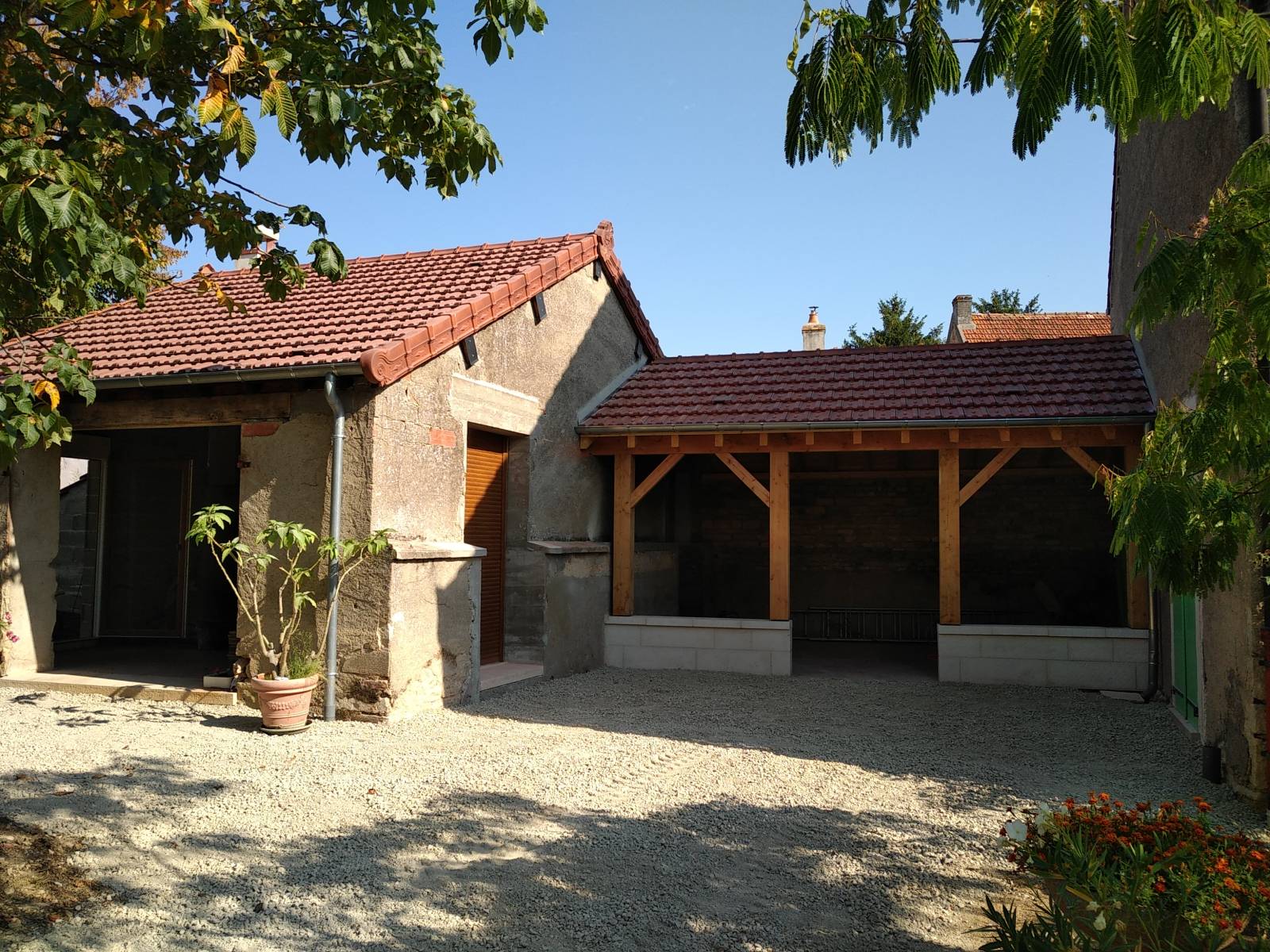 Pour ce chantier situé à Sainte-Marie-la-Blanche, près de Beaune, la SARL René L’Excellent a été sollicitée par un particulier pour la création d’un appentis en ossature bois et sa couverture.