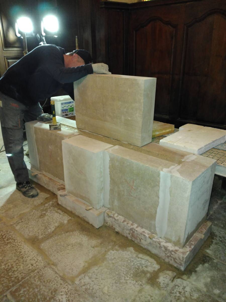 Les pierres neuves (Semond, Ladoix et Carrare) ont été taillées et polies par "Le Comptoir des Pierres" à Comblanchien.