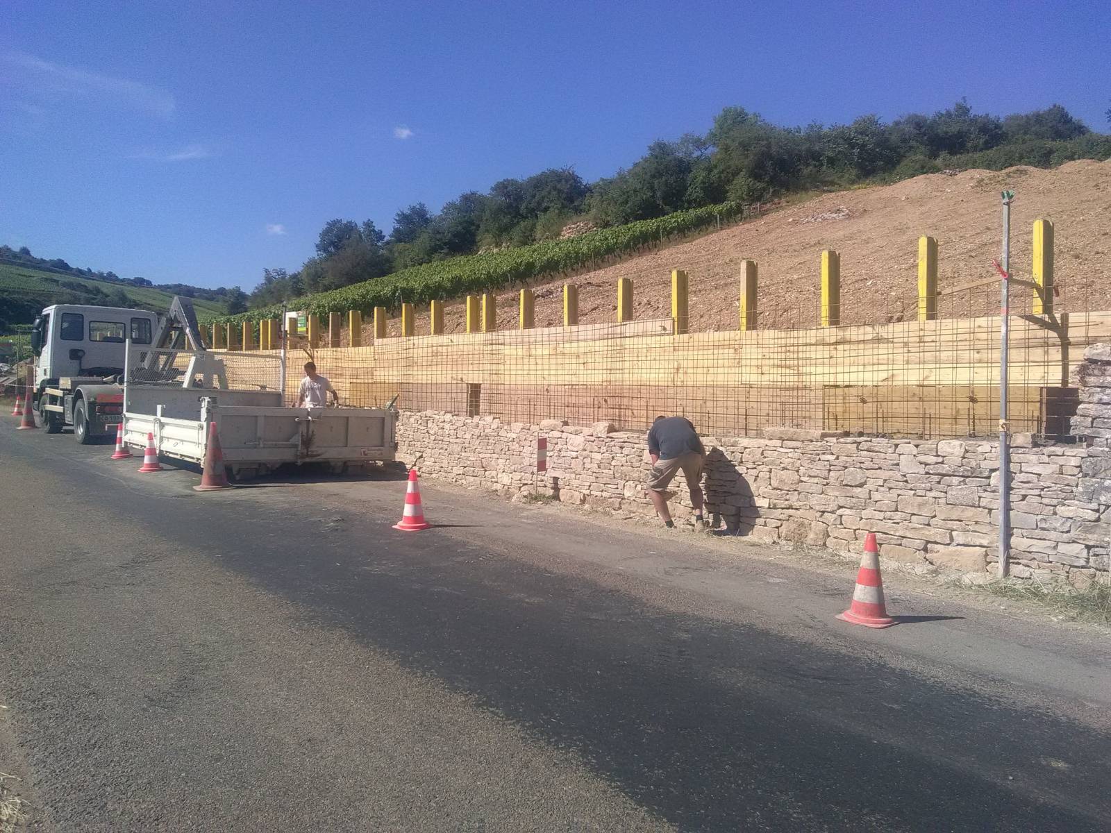 Pour ce chantier, la SARL René l'Excellent a été contactée par un domaine viticole de Meloisey proche de Meursault pour la réfection d'un mur de soutènement en pierres.
