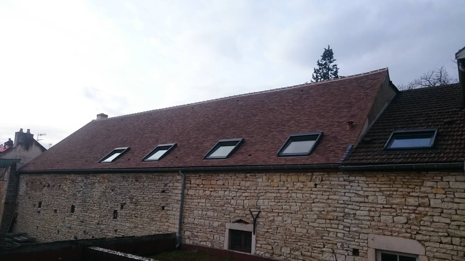 Notre intervention de 3 mois avait pour principal but de conserver un maximum de tuiles anciennes afin de ne pas dénaturer l'ensemble bâti du domaine.