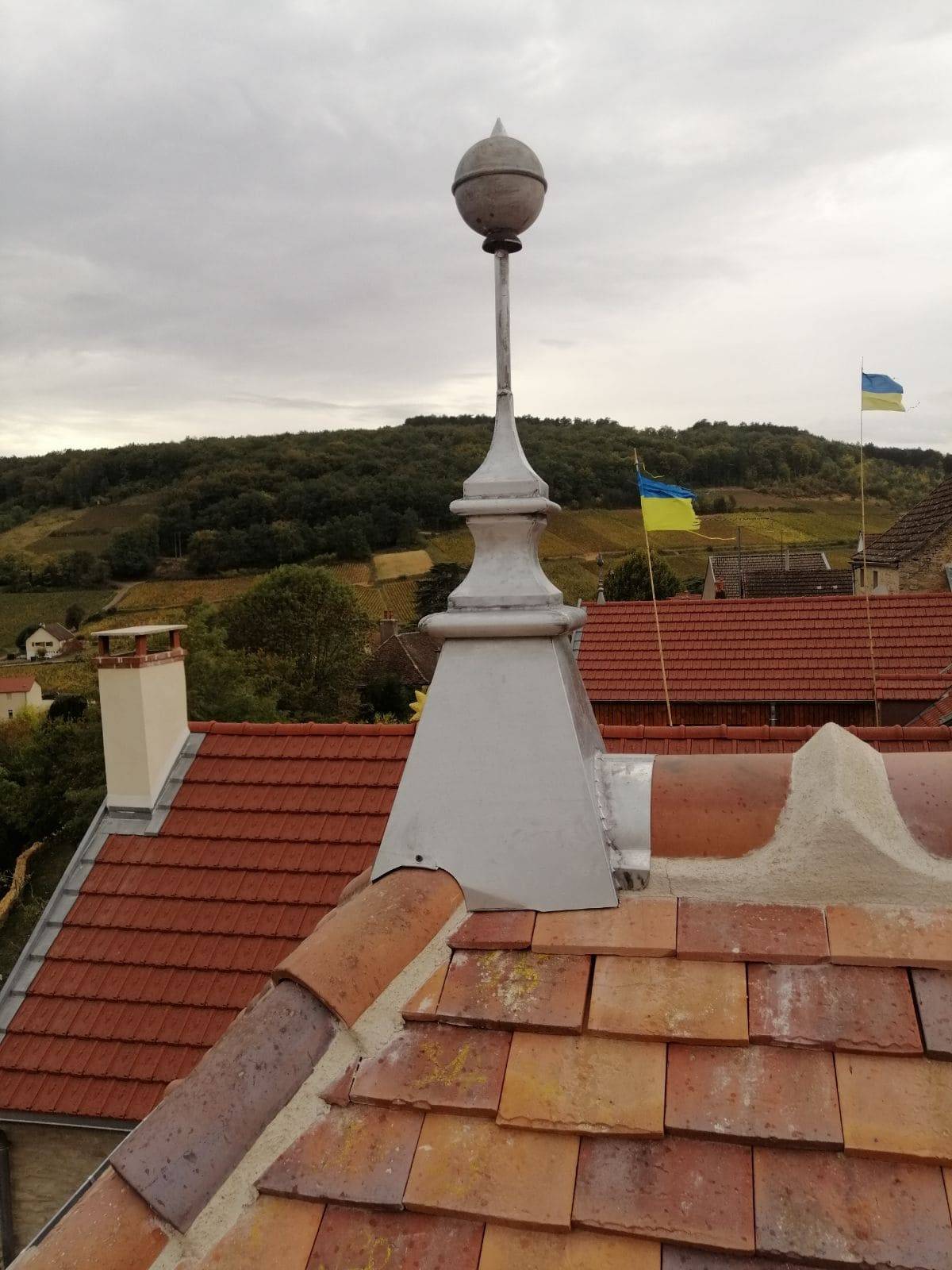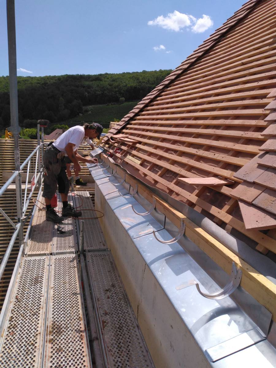 Pour ce chantier situé à Pernand-Vergelesses, la SARL René l'Excellent a été contactée par un propriétaire pour s'occuper de la rénovation complète de sa toiture, des gouttières et des épis de toiture en zinc de sa maison.