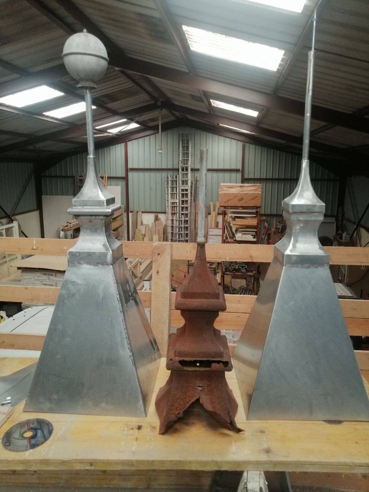 Plus précisément, nous avons procédé à la dépose de l'ancienne zinguerie, puis mis en œuvre des gouttières sur entablement en zinc naturel. Les épis de toiture ont été réalisé dans notre atelier, identiques aux existants.