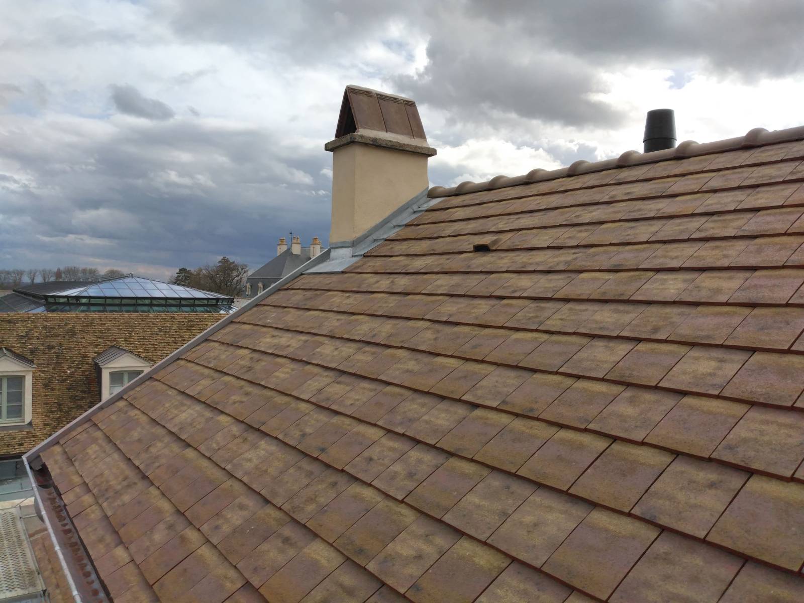 Dans le cadre de la rénovation de la toiture chez un particulier à Pommard, nous avons réalisé le remplacement complet des éléments courants de zinguerie :